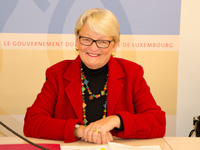 01.02.2011PressekonferenzEin Aufkleber für die Sonderrechte von behinderten Personen mit ihren Assistenzhunden.Zusammen mit Frau Marie-Josée Jacobs, Ministerin für Familie und Integration, haben die Vereinigungen "Chiens Guides d'Aveugles au Luxembourg" (CGAL) und "RAHNA – Muppen ënnerstëtze Leit am Rollstull" ihren gemeinsam entwickelten Aufkleber für die Sonderrechte von behinderten Personen mit Assistenzhunden vorgestellt.Motivation des ProjektesIm Normalfall ist Hunden der Zugang zu vielen Bereichen des täglichen Lebens untersagt. So endet der Weg für Hunde vor der Tür im Lebensmittelhandel, im Restaurant, im Kino, im Theater, im Schwimmbad oder im Krankenhaus.Eine Ausnahme für diese Hundeverbote definiert das Gesetz vom 22. Juli 2008 über den Zugang zu öffentlich zugängigen Orten für behinderte Menschen, die von ihren Assistenzhunden begleitet werden. Die Assistenzhunde stellen eine technische Lebenshilfe für die betroffenen Menschen dar und erlauben deren Eingliederung in die Gesellschaft und ein Leben in relativer Autonomie. In der Vergangenheit haben betroffene Menschen immer wieder feststellen müssen, dass dieses Gesetz nicht überall bekannt ist. Um den Bekanntschaftsgrad zu erhöhen und damit allen Behinderten mit Assistenzhunden den Zugang zu erleichtern, haben die Vereinigungen CGAL und RAHNA diesen neuen Aufkleber entworfen. Der Aufkleber soll an Schaufenstern oder Türen angebracht werden. Er wurde so entworfen, dass alle grafischen Elemente auch aus zwei Meter Entfernung gut zu erkennen sind. Vor einem gelben Hintergrund zeigt der Aufkleber das blaue Gebotsschild einer Person im Rollstuhl mit Assistenzhund. Die Person im Rollstuhl ist das internationale Symbol für Behinderung und steht für alle Arten von Behinderungen. Der Text "Bienvenue aux Chiens d'Assistance" mit dem Hinweis auf das entsprechende Gesetz runden den Aufkleber ab. Klicken Sie auf eines der Bilder um es zu vergrößern.
