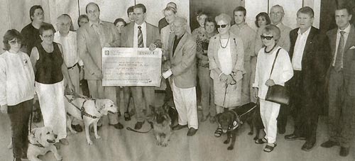 ![]() 25.09.2003 13 500 € für Blindenführhundschule aus Metz-WoippyNoble Geste der "Amis et maîtres de chiens guides d'aveugles au Luxembourg"![]() (Photo: N. Gillen) Im Rahmen einer kleinen Feier im Kulturzentrum Cents überreichte Roland Welter, Präsident der "Amis et maîtres de chiens guides d'aveugles au Luxembourg" (AMCGAL) einen Scheck über 13 500 € an Direktor Raymond Ney und seine Mitarbeiter von der Schule für Blindenführhunde "Centre Paul Corteville Woippy" in Metz. Ein Ziel der AMCGAL besteht darin, die Ausbildungszentren für Blindenhunde zu fördern, die ihre Tiere kostenlos Blinden und Sehbehinderten in Luxemburg zur Verfügung stellen. Derzeit besitzen vier Mitglieder einen solchen Hund; vier weitere stehen noch auf der Warteliste, um einen solch treuen Begleiter zur autonomen Bewegung zu erhalten. In einer kurzen Ansprache hob Präsident Roland Welter die große Solidarität vieler edler Spender aus Luxemburg hervor. Erst sie ermöglichen die Versorgung der Blinden und Sehbehinderten mit Blindenführhunden. Der Betrag der überreichten Summe entspricht ungefähr den Kosten, die bei der Ausbildung eines Führhundes entstehen. ng